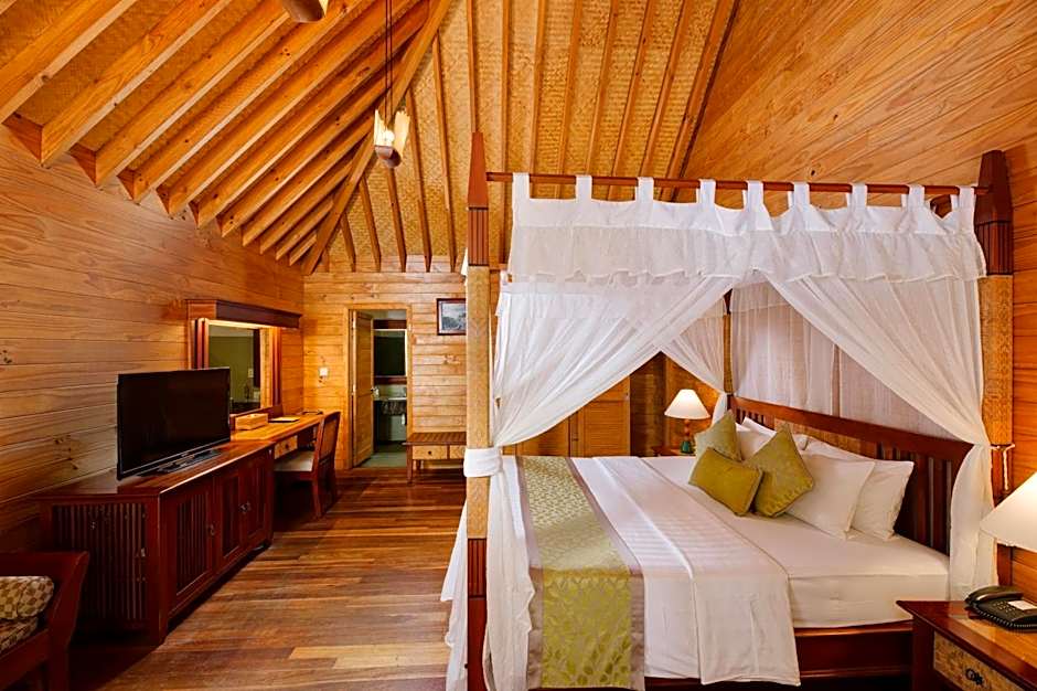 Em uma praia de areia emoldurada por uma entrada privativa, terraços e um jardim exuberante com vista para o mar, os hóspedes podem alternar entre relaxamento e atividades. A propriedade conquistou um considerável volume de avaliações — 1.245 no total — refletindo a atmosfera vibrante da ilha e a variedade de experiências a explorar. Os esportes aquáticos no local e os tratamentos de spa estão disponíveis por uma taxa extra, convidando a uma mistura equilibrada de aventura e mimos durante a estadia nas Maldivas.