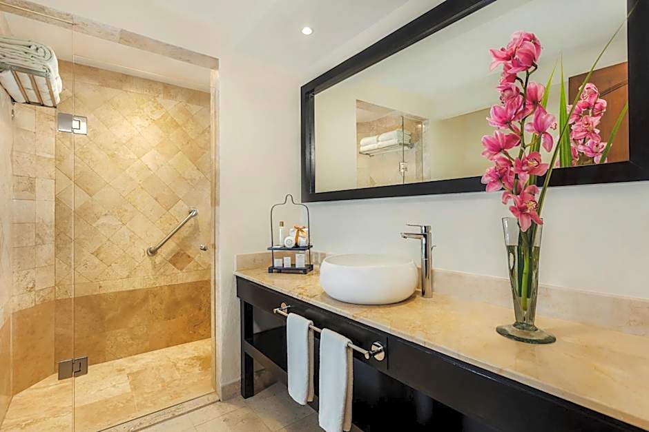 As acomodações apresentam uma variedade de suítes e layouts com acesso direto à piscina, incluindo Preferred Club Suite, 1 Quarto, Frente para o Mar; Swimout, King, Vista para a Piscina; e Suíte Júnior, Frente para o Mar. Outras opções atraentes incluem Suíte Premier, 2 Quartos. Para atividades, tênis é gratuito, um campo de golfe nas proximidades está disponível por um custo adicional, e mergulho com snorkel, spa e massagem, babá e serviço de transporte são listados como extras opcionais. Refeições para crianças (gratuitas) e um buffet infantil ajudam nas refeições em família, completando uma animada escapada no México.