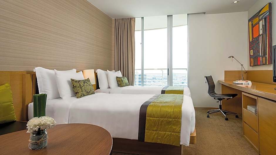 As opções gastronômicas dentro do hotel abrangem diferentes ambientes e cardápios. O 100 East funciona como um espaço moderno e familiar, com pizza, frutos do mar, comida tailandesa, pratos locais e internacionais. O Crust é especializado em pizza num ambiente moderno. Para vistas elevadas e um cardápio internacional, o Zoom Sky Bar & Restaurant e o Zoom Sky Lounge combinam ambientes modernos e românticos com pratos internacionais. O Zin Bar oferece um espaço descontraído para relaxar após um dia de passeios.