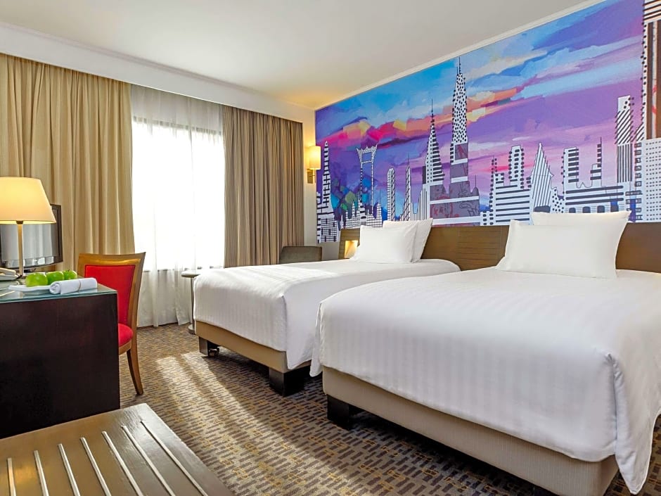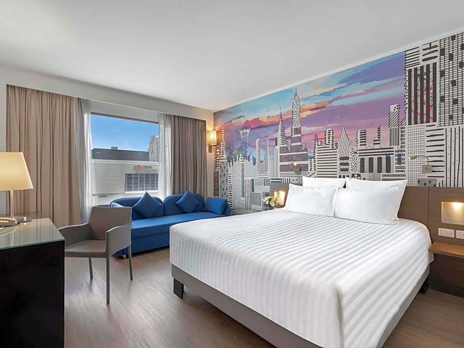 Prepare-se para se deliciar com uma infinidade de fabulosas comodidades que fazem deste hotel uma visita obrigatória! Se você deseja relaxar na piscina externa ou se mimar com uma massagem relaxante no spa, o Novotel Bangkok sabe como cuidar de você. As famílias vão adorar o clube infantil gratuito, a piscina infantil e o buffet amigável para crianças, garantindo que os pequenos estejam entretidos enquanto você desfruta de um merecido relaxamento. Para o viajante a negócios, o acesso gratuito ao centro de negócios e a opção de instalações para reuniões tornam o trabalho fora de casa uma brisa.