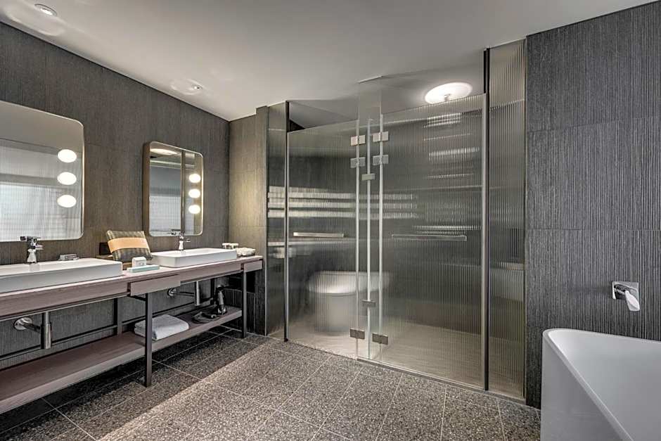 A piscina de borda infinita no terraço, exclusiva para adultos, é um destaque, oferecendo vistas ao ar livre da cidade para um escape chique e refrescante.