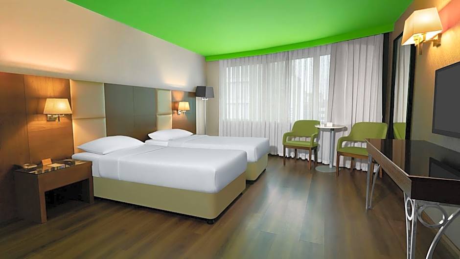 As opções de quartos atendem a diferentes necessidades, desde Quartos Standard (cerca de 248 pés²) com duas camas de solteiro e uma cama de casal, até Quartos Duplos Superior (aproximadamente 301 pés²) com uma cama king plus uma cama de casal. Opções orientadas para famílias têm cerca de 377 pés², com variações com vista para a cidade, acomodando vários hóspedes, enquanto suítes maiores com vista para a cidade oferecem espaço amplo para grupos ou estadias prolongadas. Quartos para não fumantes e artigos de higiene gratuitos aumentam o conforto em todas as opções.