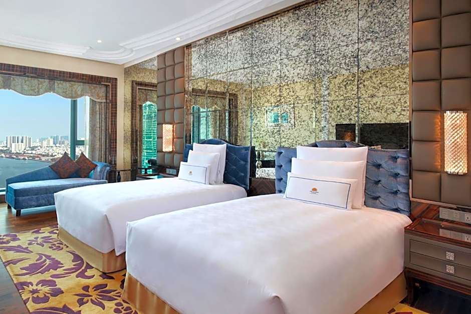 Um amplo leque de acomodações aguarda, variando da Panoramic Suite com vista para a cidade até o Apartamento de 1 Quarto com vista para o rio, todos projetados para conforto e vistas memoráveis. Outras opções incluem Deluxe Twin com vista para cidade/ rio; Suíte Romance com vista para a cidade; e Designer Suite com acesso ao Executive Lounge, oferecendo uma estadia elevada com benefícios premium e uma variedade de perspectivas cênicas.