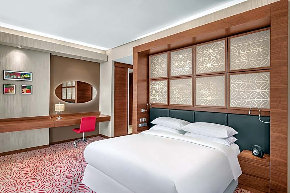 The Four Points by Sheraton Doha offers classic rooms with two twin/single beds, deluxe rooms with two twin/single beds, classic rooms with one king bed, and deluxe rooms with one king bed. All rooms are non-smoking and can accommodate two adults and one child. The room sizes range from 355 sqft to 409 sqft.