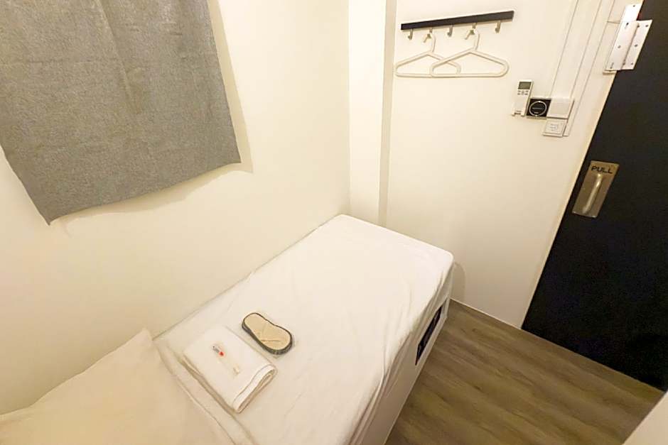 A cabin-sized room with communal aircon, equipped with power sockets and reading light. A secure electronic safe (accessed with a pin number) and lockable cabinet are provided. As the rooms are partitioned, we are not fully soundproof.