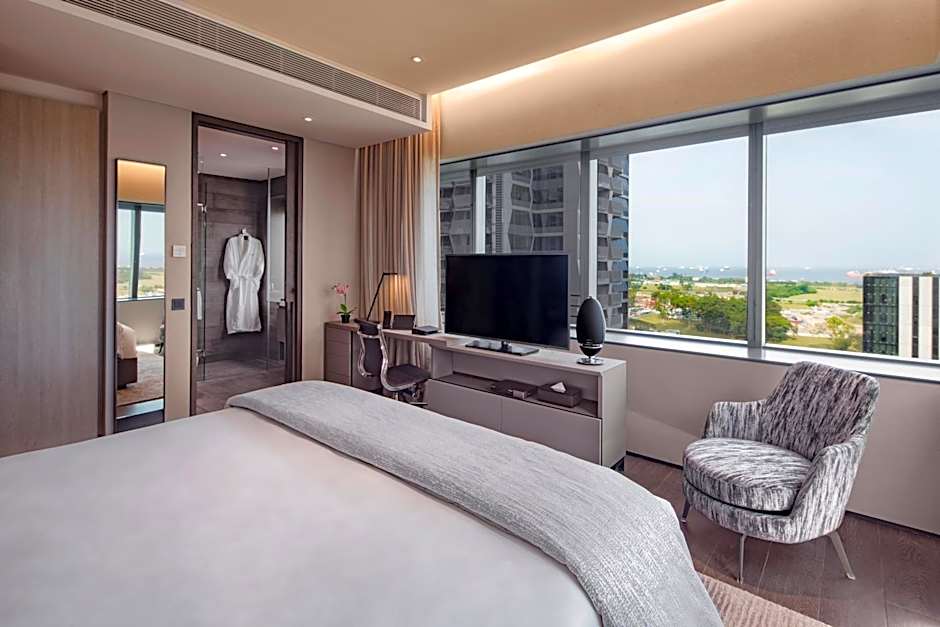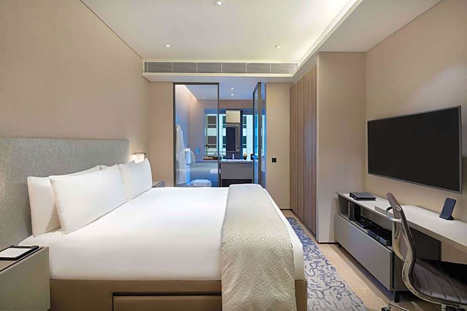 한층 더 럭셔리한 경험을 원하신다면 호텔의 원베드룸 프리미어 스위트를 이용해 보세요. 570제곱피트(약 53㎡) 이상의 면적을 자랑하는 이 호화로운 스위트는 성인 2명과 어린이 1명까지 편안히 머무를 수 있는 넓고 우아한 생활 공간을 제공합니다. 킹사이즈 침대가 갖춰져 있어 편안한 숙면을 보장하며, 세련된 디자인과 신중하게 선별된 어메니티로 싱가포르 중심부에서 잊지 못할 숙박을 약속합니다.