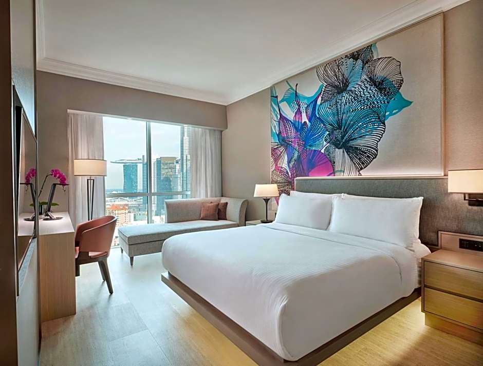1 King bed with 32 sqm contemporary designed Premier rooms with a view of the iconic and lively Singapore River along the hotel. Featuring the iconic Singapore river view, Premier Waterfront rooms features sustainable amenities in-rooms while it offers a bath tub and a seperate shower, along with connecting rooms which are subjected to room availability.