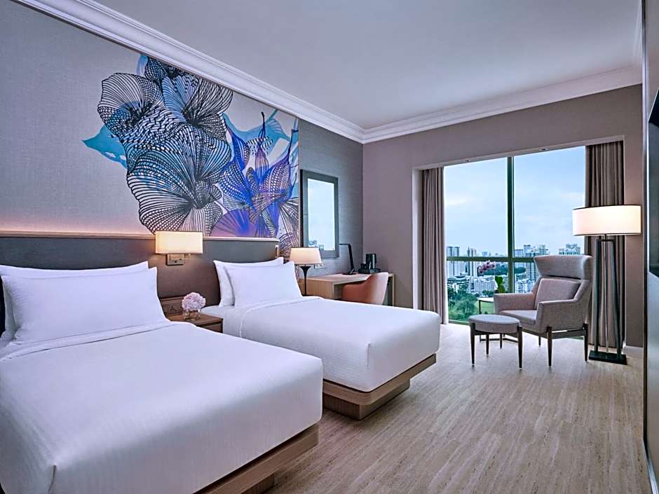 2 Single bed with 26 sqm contemporary designed deluxe rooms with views of the iconic and lively Singapore River along the hotel. Featuring the iconic Singapore river view, Grand Deluxe Waterfront rooms features sustainable amenities in-rooms while it offers either a bath tub or standing shower, along with connecting rooms which are subjected to room availability.