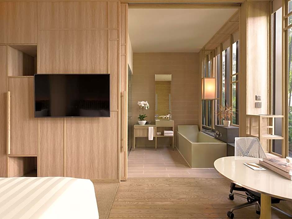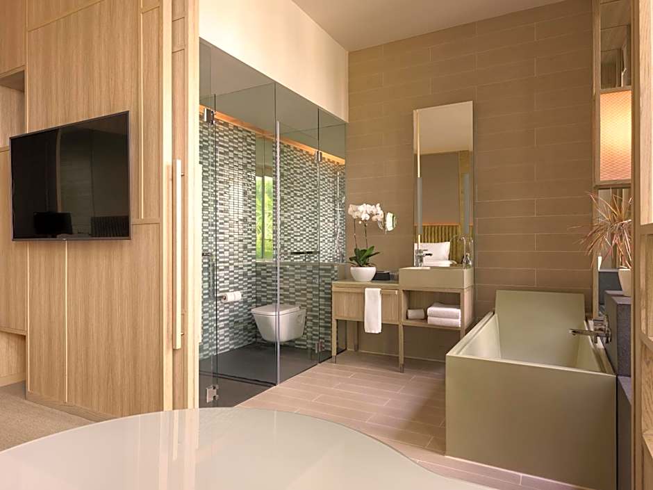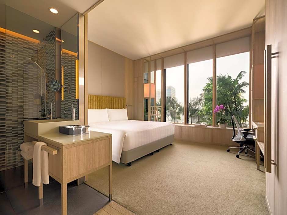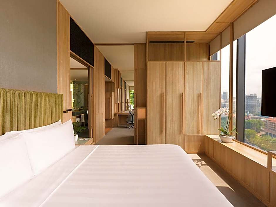 This luxurious room features floor-to-ceiling windows that open up to views of the city or Hong Lim Park. The room is fitted with a Nespresso coffee machine, 55-inch flat-screen cable TV and executive lounge access. Bathtubs are available in select rooms.