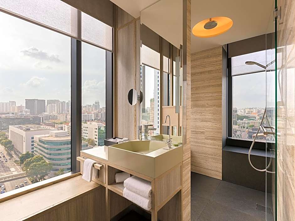 Rooms have views of Hong Lim Park and Chinatown through the floor-to-ceiling windows.