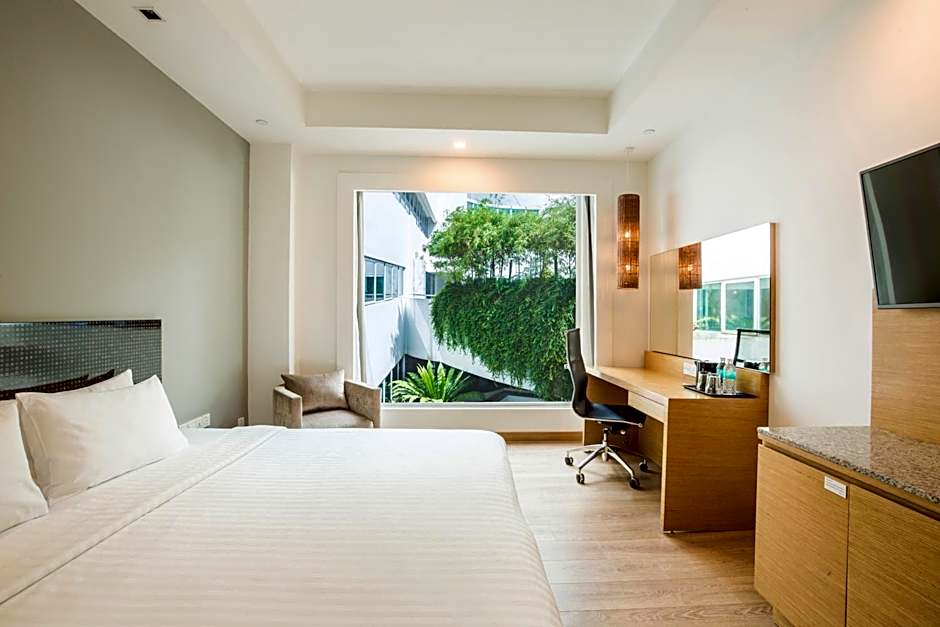 The hotel also offers a garden view, providing a tranquil atmosphere and a perfect place to unwind. With various leisure amenities such as a golf course and free Wi-Fi, guests can truly enjoy their time at Village Hotel Changi.