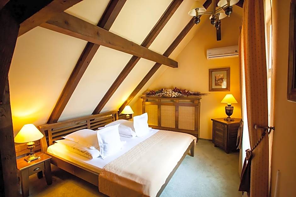 Spacious air-conditioned suite with slanted ceilings and wooden structure, a private bathroom and a shower. A living room fitted with a seating sofa is also available.
