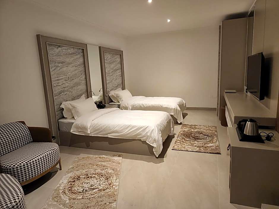 The air-conditioned suite has 1 bedroom and 1 bathroom with a shower. The suite offers a wardrobe, a sofa, a carpeted floor, heating, as well as a flat-screen TV with cable channels. The unit has 2 beds.