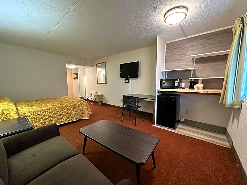 This suite has a sofa, seating area and air conditioning.