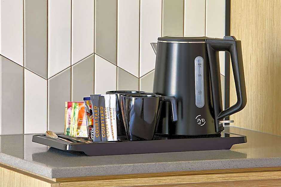 The suite offers a tea and coffee maker and city views. The unit offers 1 bed.