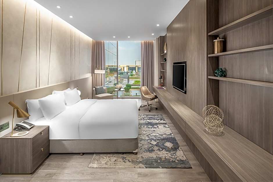 But that’s not all! The spectacular fitness center ensures you can keep up your routine while on the go, and it’s paired with options for relaxing in a garden view room. Need to host a meeting or a banquet? They’ve got you covered, although with a small extra fee. With free parking, a 24-hour front desk, and an inviting patio to wind down after a long day of exploration, Views Hotel & Residences is your perfect home base to uncover the treasures of King Abdullah City!
