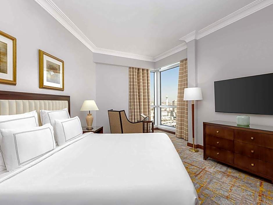 The classic room offers comfort and modern technology with a seating area with a 32” LCD / IP TV and in-Room Haram Audio. There is a Refreshment Center available to boost your energy whenever you please. Classic rooms offer two twin beds. - 2 Twin beds - A view of the city - Live in-Room Audio for prayers - Comfortable sitting area - TV screen - Delightful refreshment corner.