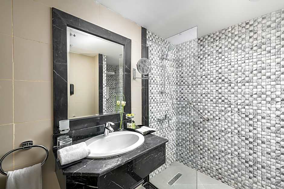 The Taiba Front Hotel offers a Presidential Villa which is a spacious 753 sqft room. Smoking is not allowed in this villa. It can accommodate up to 4 adults and 1 child, with 1 King size bed, 2 Twin beds, and 1 Sofa bed.