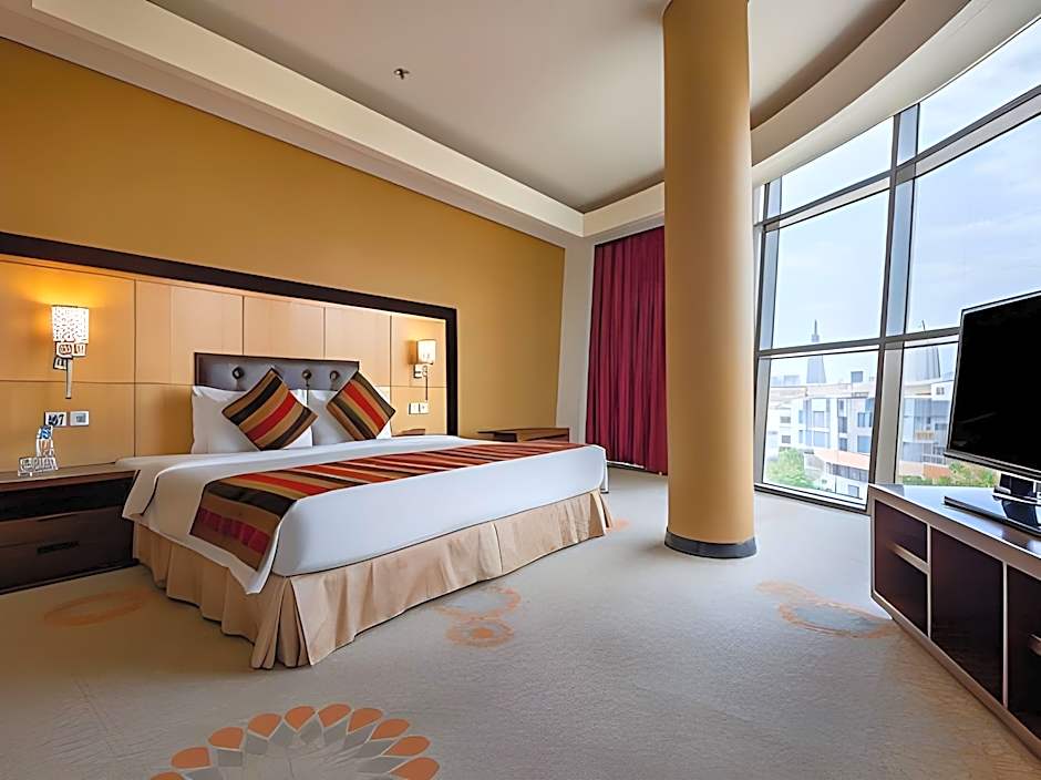 Featuring panoramic view of the Kingdom Tower, this air-conditioned suite offers a separate living room with a flat-screen TV. A mini-bar is also included.