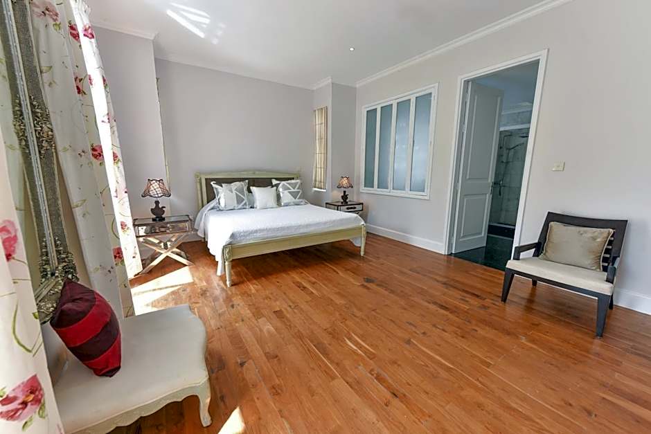 This spacious room opens onto a luxury marble bathroom with double-ended bath and separate shower. The bedroom leads to a colonial style terrace offering sea views.
