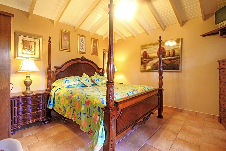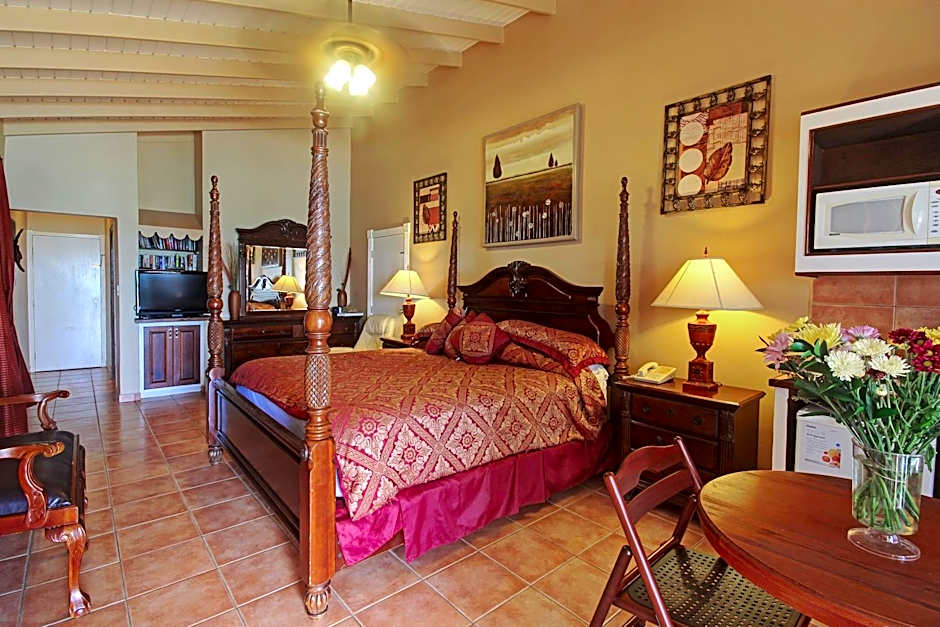 This studio overlooks the property's tropical gardens and comes equipped with a kitchen, seating area and a TV.