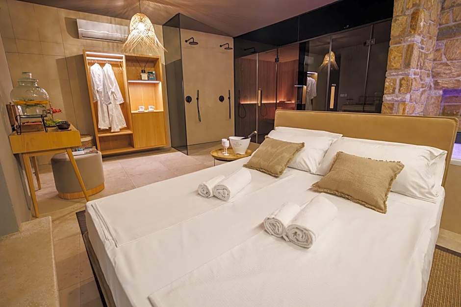This luxurious double room features a hot tub, a spa bath and a sauna. The spacious double room provides air conditioning, a private entrance, a terrace with garden views as well as a private bathroom featuring a walk-in shower. The unit offers 1 bed.