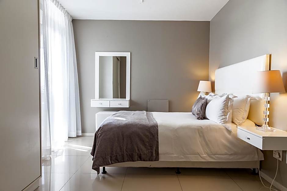 These Suites are a natural choice for couples on a romantic getaway. Our chic and elegant One Bedroom Luxury Suites are kitted with modern beach-inspired furnishings and contemporary décor. The bedroom has a double bed with a plush mattress and crisp linen and an private bathroom. The fully equipped kitchenette, luxurious lounge area with a flat screen TV and balcony ensure a comfortable stay. Your Suite will be serviced everyday and includes free Wi-Fi and secure parking.
