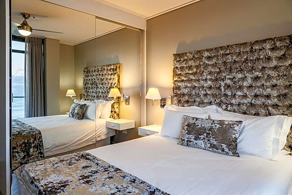 Ideal for a girl’s night, getaway with friends and a family holiday. Our chic and elegant Two Bedroom Luxury Suites are kitted with modern beach-inspired furnishings and contemporary décor. The bedrooms either have two double beds or alternatively one double bed and two three-quarter beds in the second bedroom with a plush mattress and crisp linen. The one bedroom has an private bathroom including a shower and there the additional bathroom has a shower and a bathtub. The fully equipped kitchenette, luxurious lounge area with a flat screen TV and balcony with either a stunning sea view or a view over Blouberg and a partial sea view – your choice. Your suite will be serviced everyday and includes free Wi-Fi and secure parking.