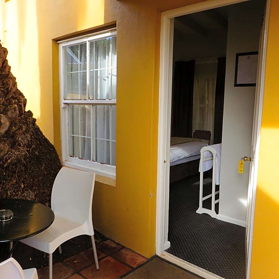 This is the only room with attached bathroom we have in the main building and it is nestled away in our tranquil garden under the palm trees. It has a king size bed, full-service satellite TV, a digital safe, block-out floor-length curtains, strong wifi and tea/making facilities in the room and, of course, an en-suite shower room. It has its own little private outside area to have your morning coffee – and watch the city wildlife of squirrels and birds drink from water feature in the garden.