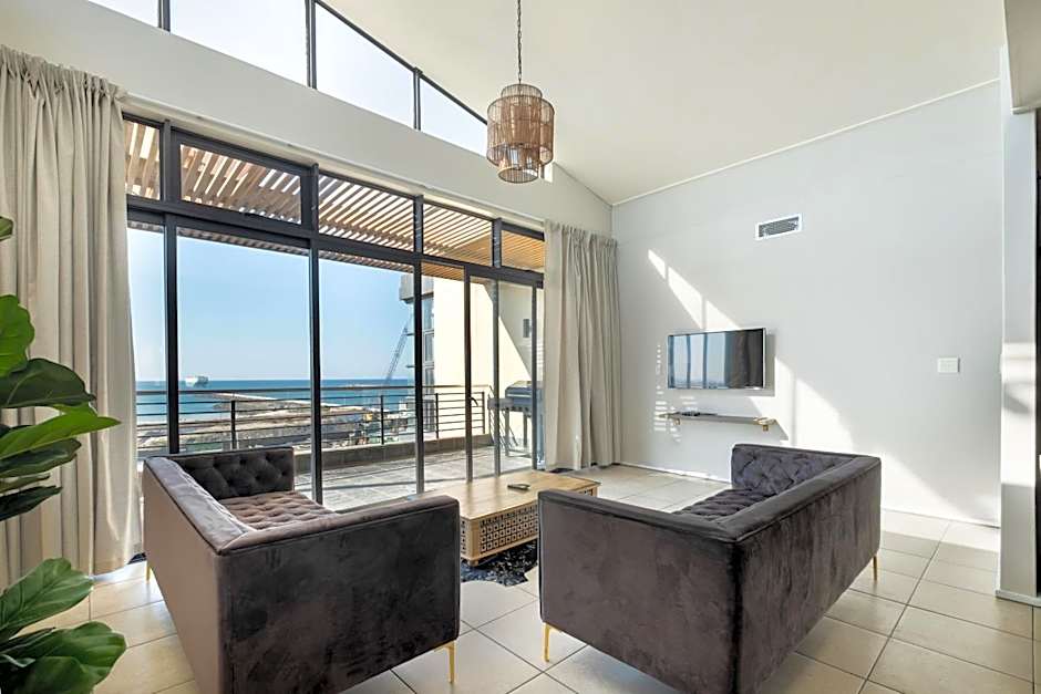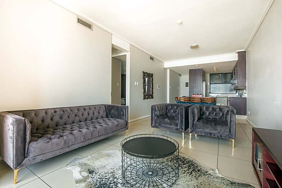 Three-Bedroom Apartment with Harbor View This spacious apartment is located on the 5th floor and offers spectacular views from the private balcony of the Durban Harbor entrance. It features 2 bedrooms, 2 bathrooms with bath and shower. The unit has an open plan living area with a fully equipped kitchen and lounge area with satellite TV. The apartment has 2 underground parking spaces.