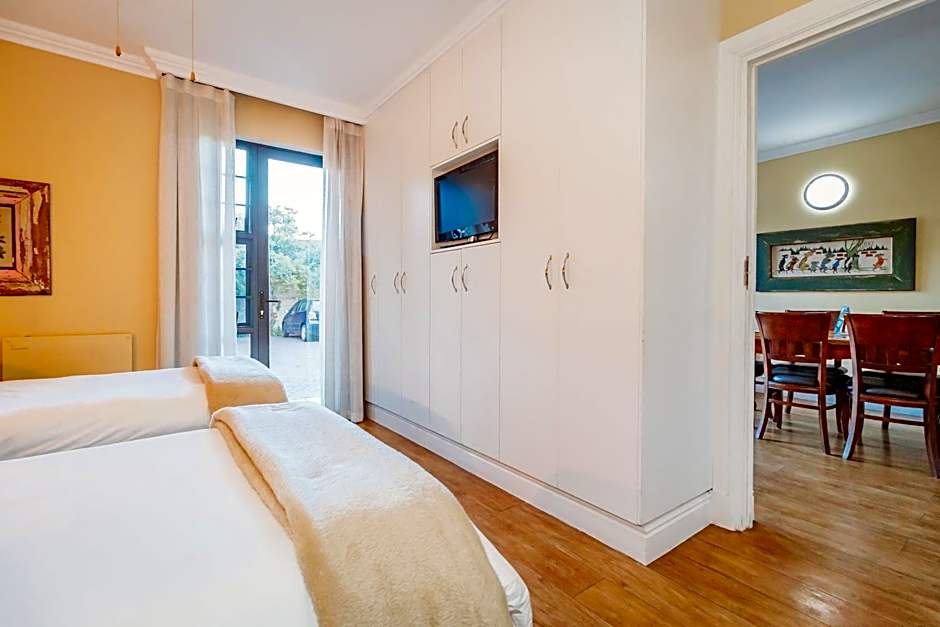This 2-bedroom suite features an en-suite shower in each room, a fully equipped kitchenette, dining area, a lounge and a flat-screen TV with selected satellite channels. The unit is fitted with ceiling fans, wall-panel heating, a safe and a private balcony/courtyard with BBQ area.