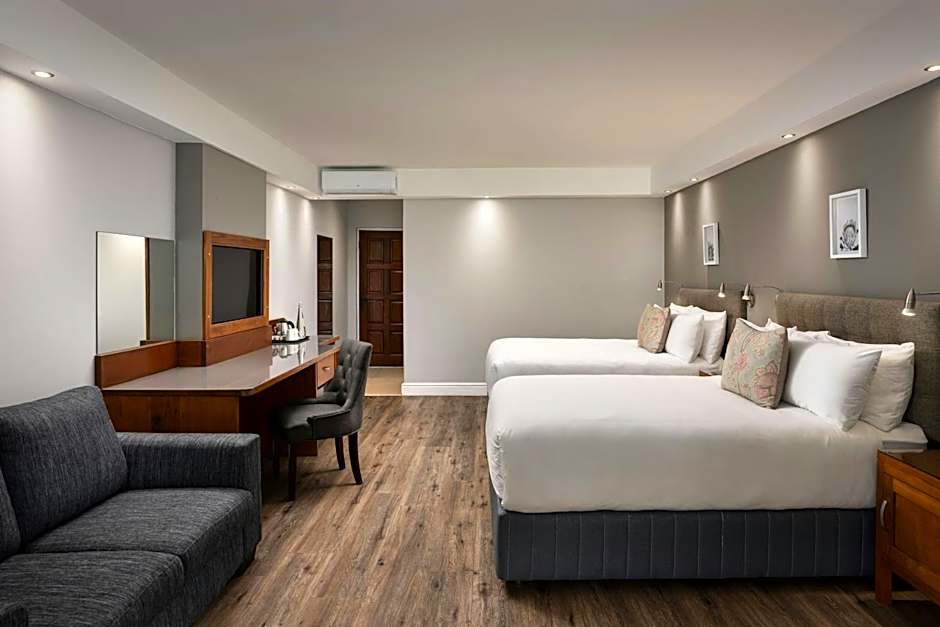 At Protea Hotel by Marriott George King George, guests can choose between a spacious Suite with 635 sqft of space for up to 4 adults and 2 children, featuring 2 double beds, and a Deluxe Room offering 388 sqft for the same occupancy with 2 double beds. Smoking is not allowed in either room.