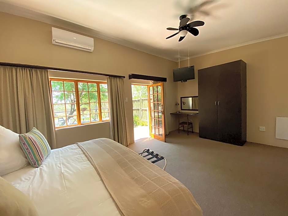 Featuring a patio with a view of the garden and dam, this spacious room includes a flat-screen satellite TV, a fully equipped kitchenette, electric blankets and air conditioning. The private bathroom is fitted with a shower. Barbecue facilities are available on request.