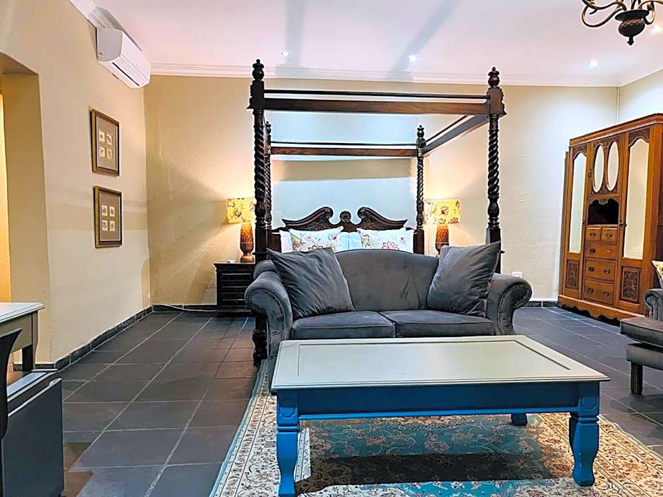 The uniquely decorated bedrooms are located in different hotel blocks across the property, some close to the hotel pool, others near the tennis courts. Most rooms have views of the lush gardens. Only some of the rooms in this category have a 4-poster bed, while others do not. Each room features air conditioning, a Smart TV with complimentary Netflix, ShowMax and YouTube and a private bathroom with bath or shower. Some rooms are tiled, some have carpets.