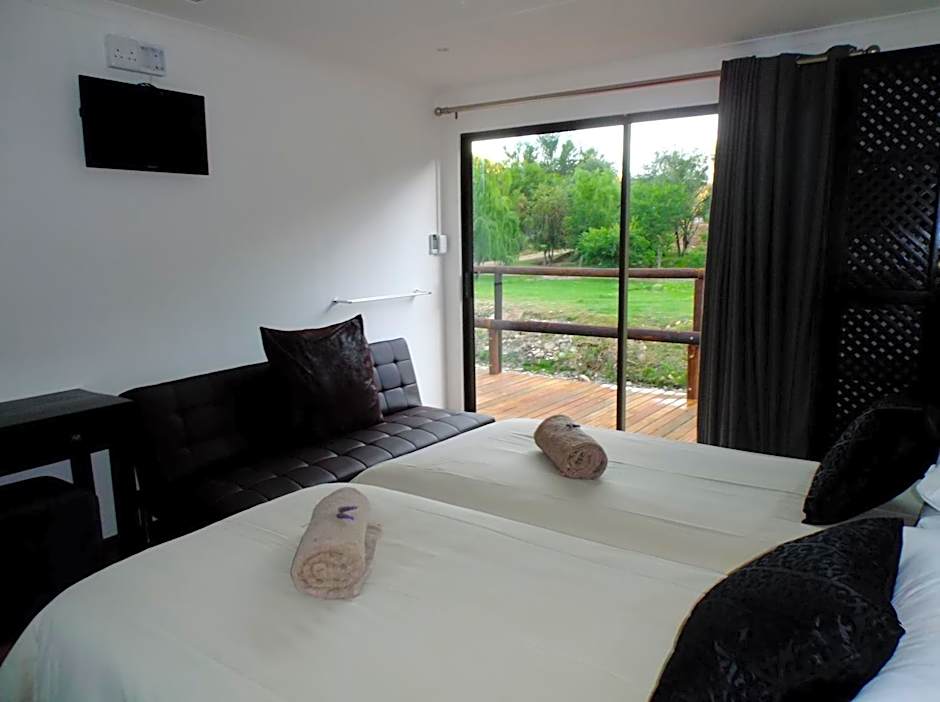 This self-catering accommodations offers an air-conditioned room along with 2 bathrooms fitted with showers. It features a balcony with mountain and river views and has a fully-equipped kitchen and living area with TV. The suite is equipped with a fridge, tea-and-coffee-making facilities and a digital safe.