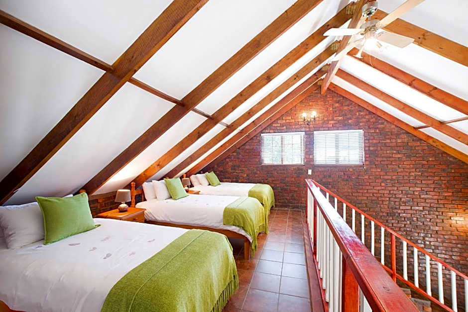 This spacious cottage has an open plan lounge with a satellite TV and dining room. It features a mezzanine level with 3 single beds and private bathroom with a bath. It also has a furnished patio with private BBQ, free Wi-Fi and a fully equipped kitchen.