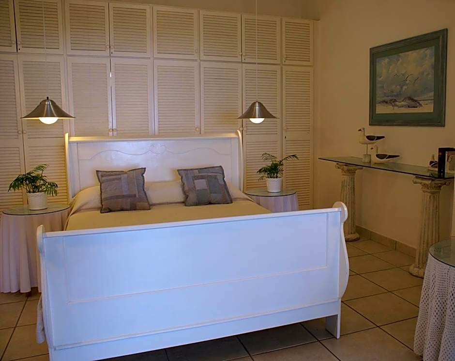 The Oyster Suite is elegantly decorated with furniture in neutral colors, and tiled floors. All rooms have a balcony overlooking the garden or the sea.