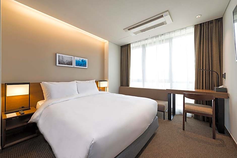 Address: 9, Gunam-Ro, Haeundae-Gu, Busan. Minimum price starts from $64 per night. Featured amenities include free Wifi, a free business center, a restaurant, a 24-hour front desk, non-smoking rooms, an elevator, and a bidet. Private Parking (extra charges), Parking On Site (extra charges), and Meeting/Banquet facilities (extra charges) are also available.