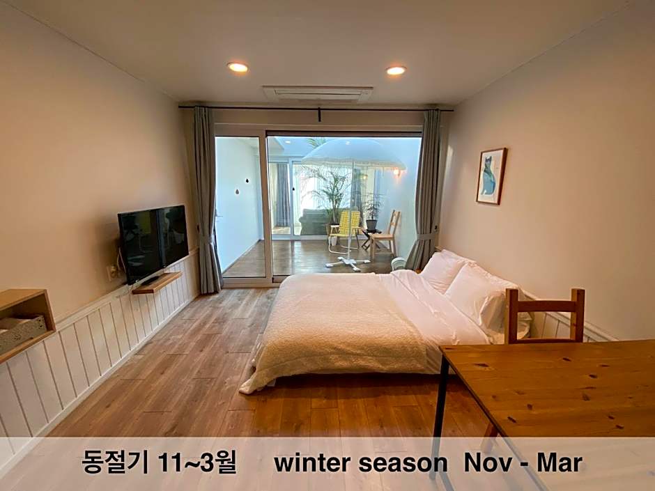 Speaking of memories, don't forget to catch those breathtaking sunrises and sunsets from your very own balcony in the Deluxe, Sea View Room. You can revel in the tranquil atmosphere while indulging in a glass of wine or enjoying a delicious meal prepared in your personal kitchen. And for those sun-soaked days, the sun deck is calling your name! Feel the gentle breeze and embrace the mild Jeju climate as you lounge under the warm rays, and if you’re feeling adventurous, you’re just moments away from the stunning landscapes that the island has to offer.