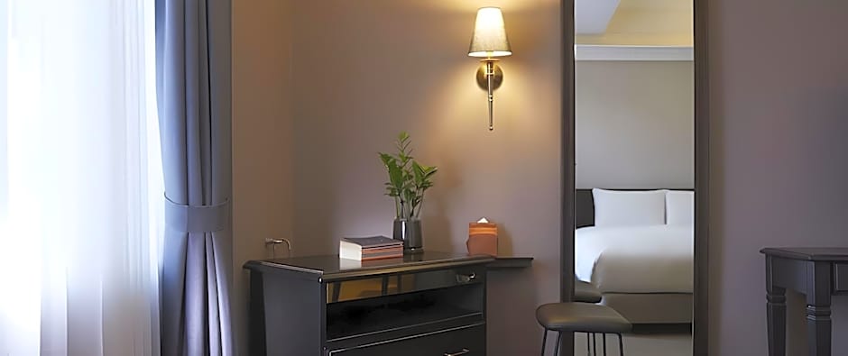 The rooms are fitted with fine-quality beddings and have spacious interiors, a flat-screen TV and a mini-bar. The private bathroom comes with a shower booth and free toiletries.