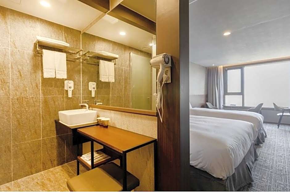 With Stay Jeju Hotel is a 3-star hotel in Jeju City, South Korea, about 2,8mi from the city center. The address is 1F With Stay Front, 34, Noyeon-ro, making it easy to locate after a day of island exploring. A traveler-friendly base with practical comforts, including air conditioning and free Wi-Fi to stay connected while on the road.