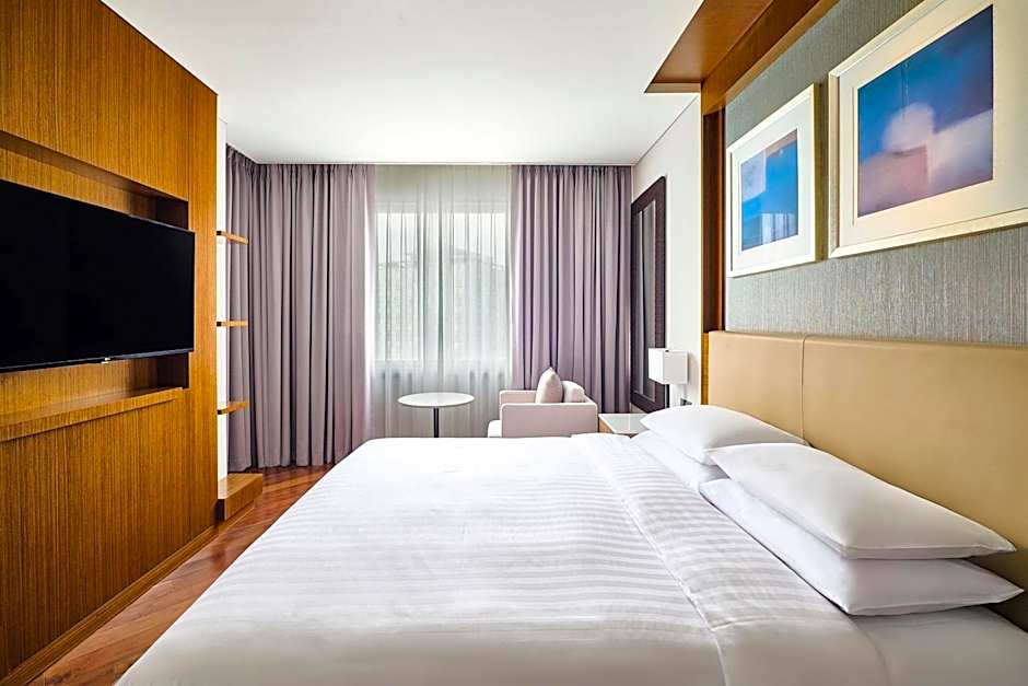 Features a glass-walled marble bathroom with a shower or a bath. A mini-bar and tea/coffee maker is included. Ample work space features as part of rooms. Slippers and free bottled water are provided. If booked for 3 adults, additional charges will be applied for breakfast of the third guest.