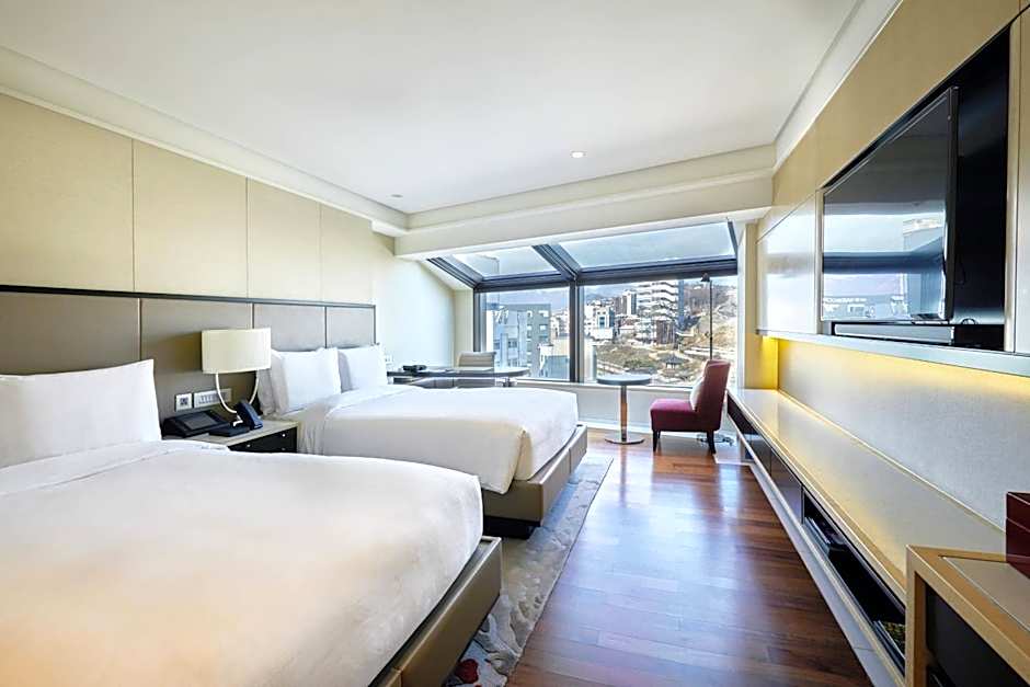 The hotel offers a variety of dining options. Tavolo 24 serves international cuisine and has a family-friendly and modern ambiance. BLT Steakhouse, with its modern and romantic ambiance, specializes in steakhouse cuisine. The Lounge and The Griffin Bar offer a mix of family-friendly, modern, and romantic ambiances. Seoul Baking Company is a modern restaurant on-site.