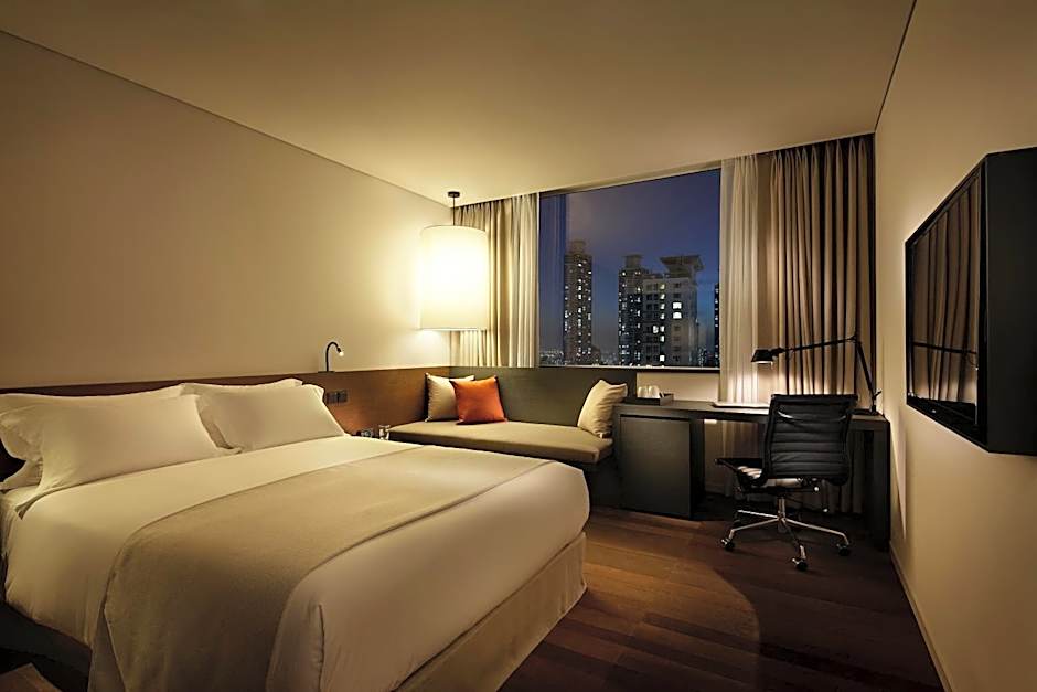 Providing bathrobes, this double room includes a private bathroom with a shower, a bidet and a hairdryer. The air-conditioned double room provides a flat-screen TV with streaming services, a wardrobe, a safe deposit box, a sofa as well as city views. The unit offers 1 bed.