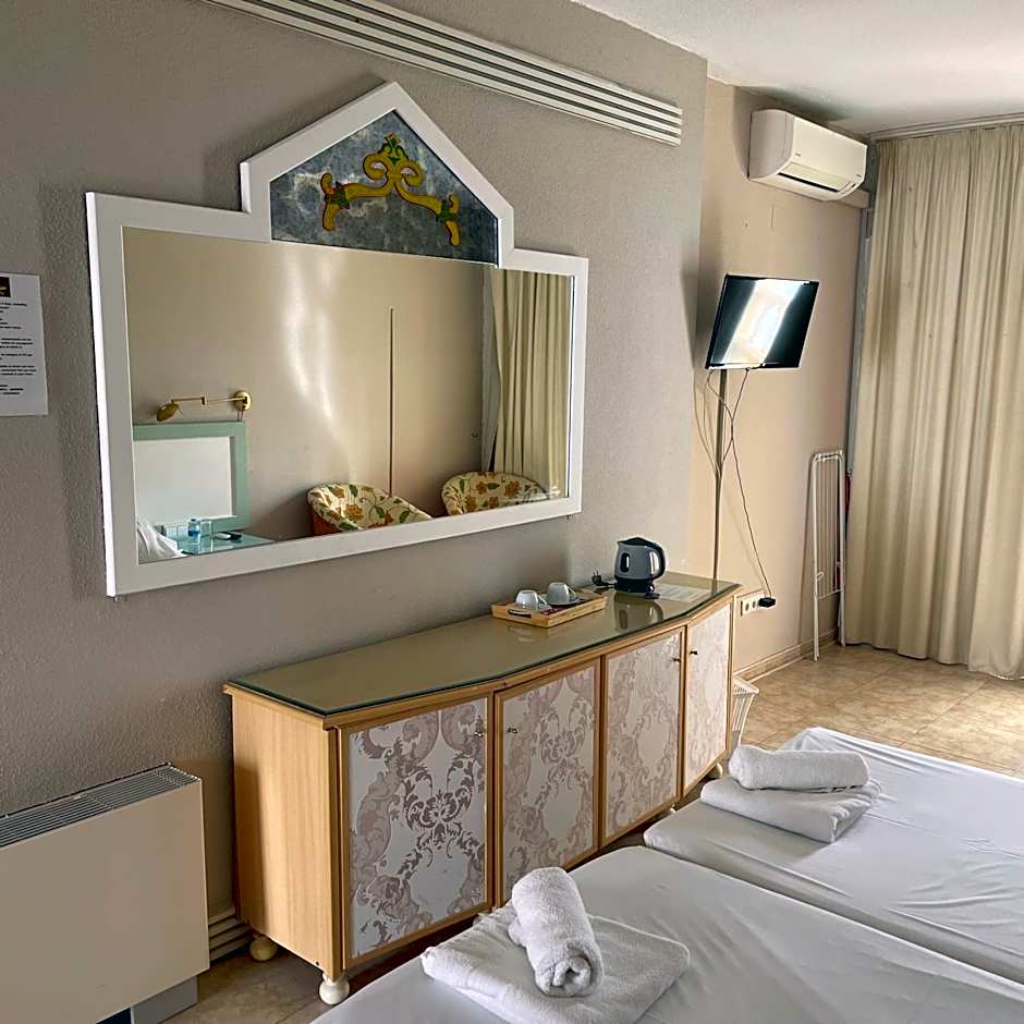 Rooms at Hotel Algorfa include single rooms, double rooms, twin rooms, and family rooms. Occupancy ranges from single occupancy in single rooms to up to four guests in family rooms. Smoking is not allowed in any of the rooms. Bed sizes range from single beds in single rooms to larger bed sizes in double and family rooms.