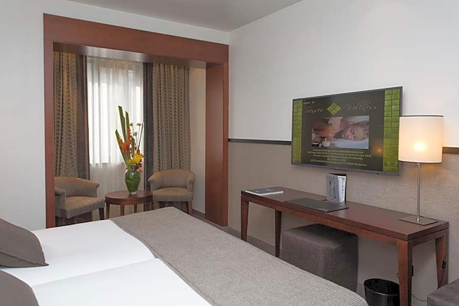 This room includes free access to the hotel's small wellness area, which has a sauna, experience shower, fitness machines, a solarium and treatment cabins.
