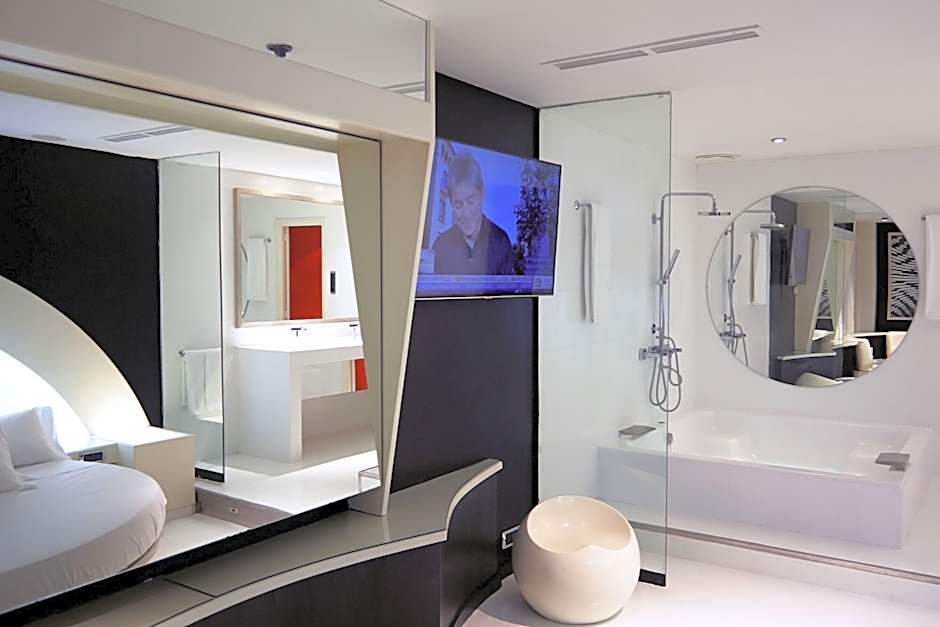 This stylish, air-conditioned suite features free Wi-Fi, a flat-screen satellite TV and private bathroom with a large hot tub. It has a seating area, a round bed and large mirrors on the walls. Hairdryer is available upon request at reception, free of charge.