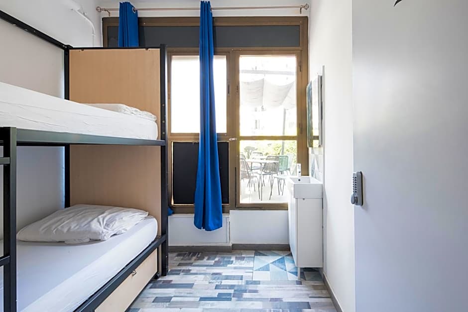 This bright, female-only dormitory room features graffiti art, free Wi-Fi and a balcony. It has central heating, bunk beds, sheets and a shared private bathroom.
