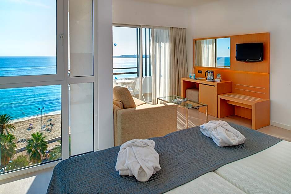 The hotel also has Junior Suite Sea View and Junior Suite Lateral Sea View rooms, which are suite rooms with a room size of 323 sqft. Smoking is not allowed in these rooms. They can also accommodate up to three adults and have a combination of one sofa bed and two twin beds.