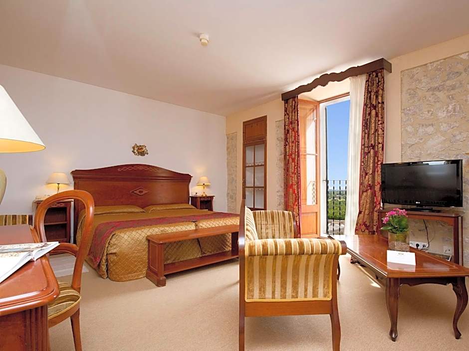 This suite measures 115 ft² and includes a bedroom and separate living room, decorated in a rustic, Majorcan style. It features improved panoramic views.